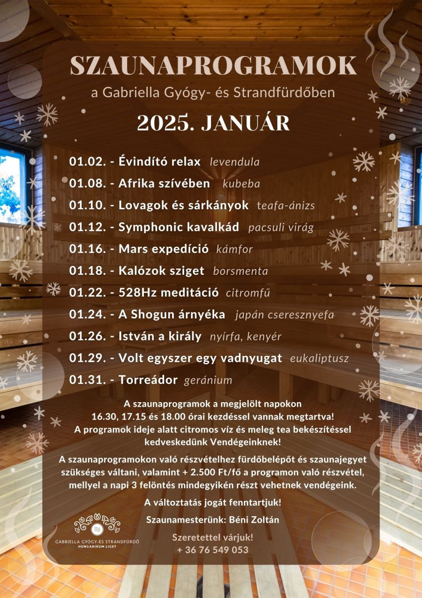 Kezdje az új évet különleges szaunaprogramjainkkal!
