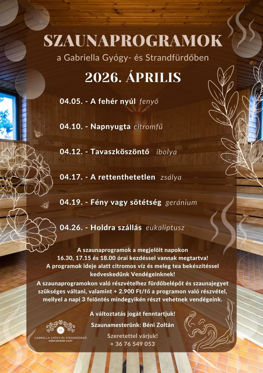 2026. áprilisi szaunaprogramok