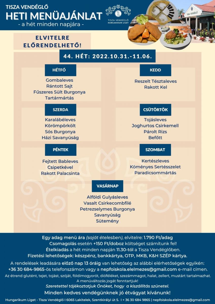 Tisza Vendéglő heti menü ajánlata 2022. 10. 31. - 11. 06.