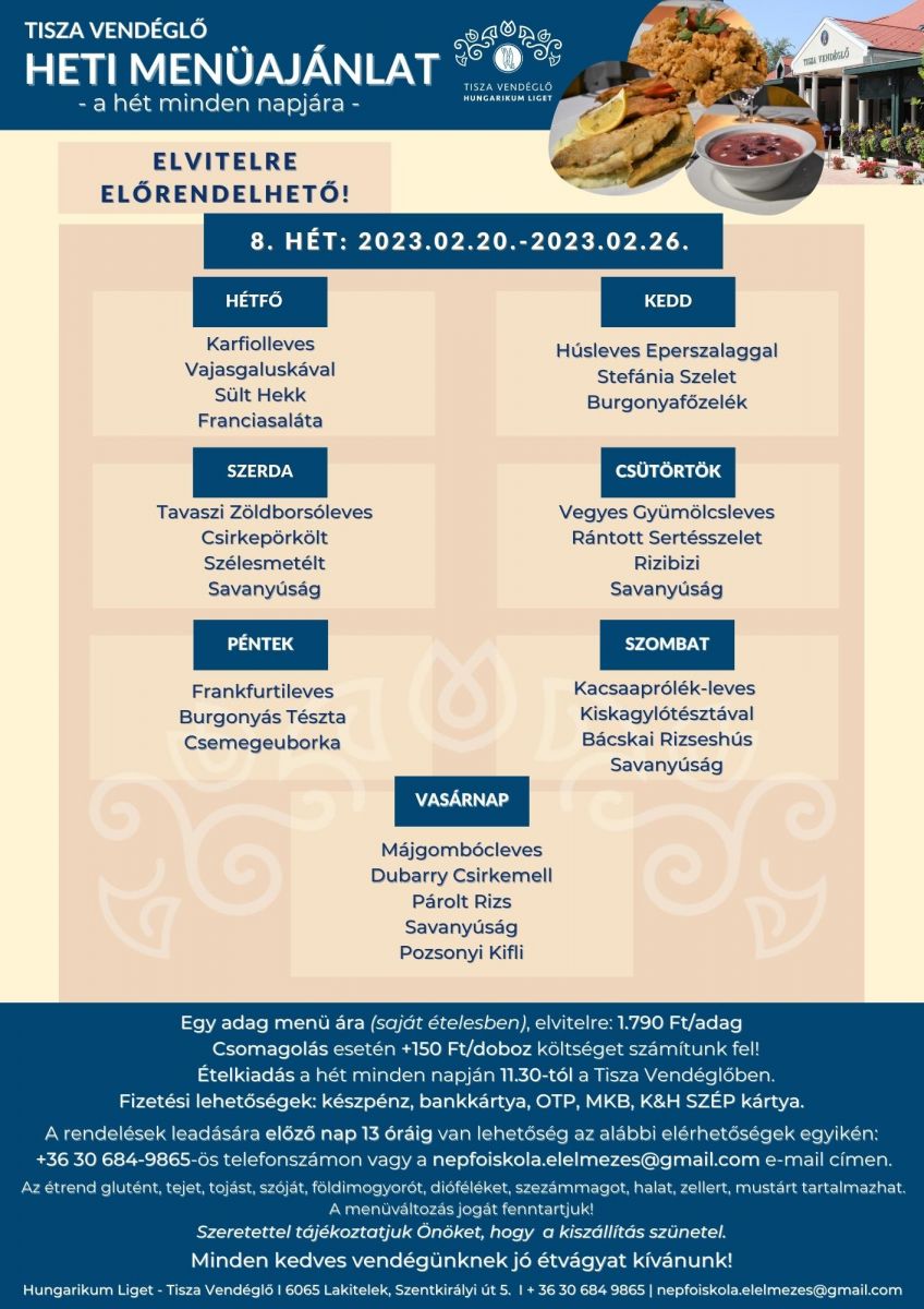 Tisza Vendéglő heti menü ajánlata 2023. 02. 20. - 2023. 02. 26.