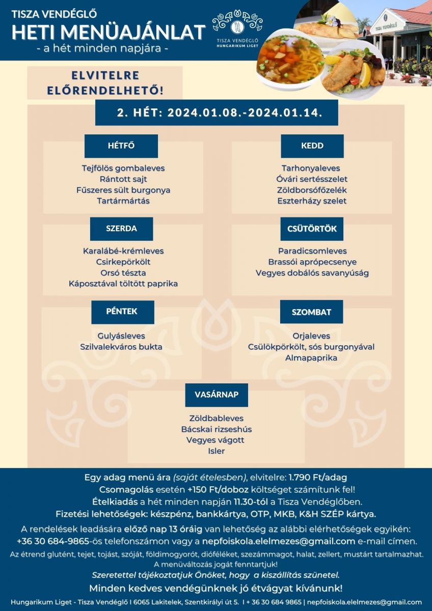 Tisza Vendéglő heti menü ajánlata 2024.01.08.-2024.01.14.