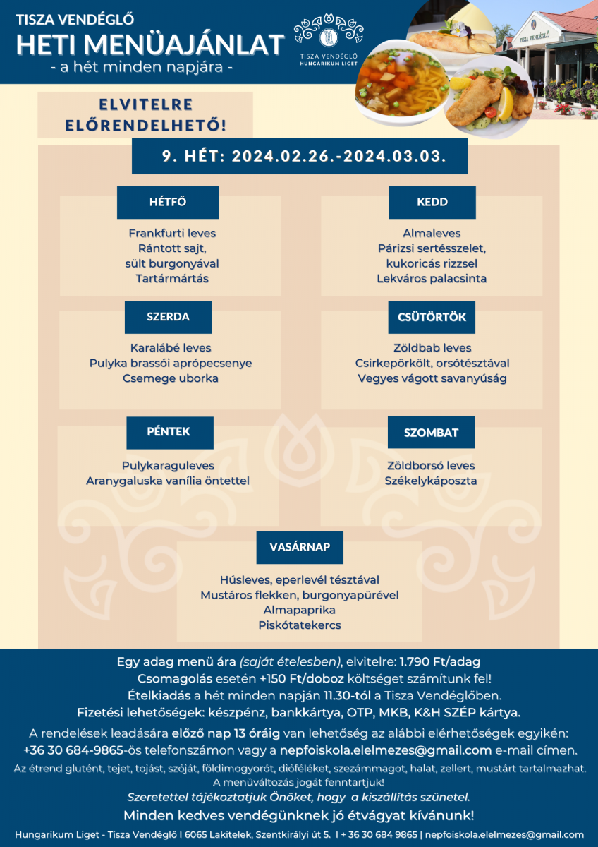 Tisza Vendéglő heti menü ajánlata 2024.02.26.-2024.03.03.