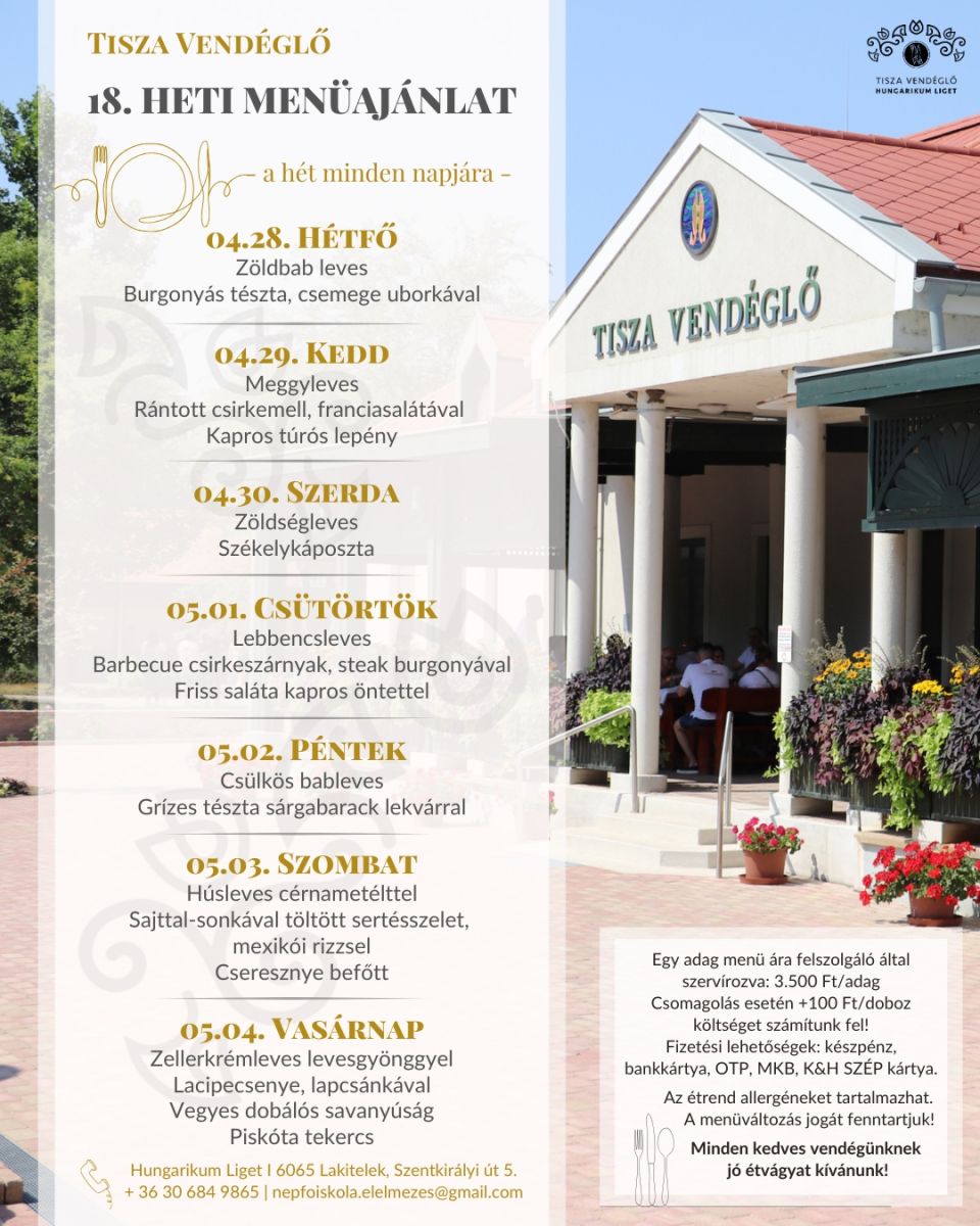 Tisza Vendéglő heti menü ajánlata 2025.04.28.-2025.05.04.