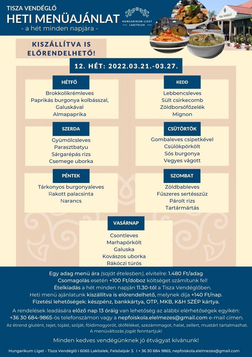 Tisza Vendéglőnk heti menü kínálata 2022.03.21.-03.27.