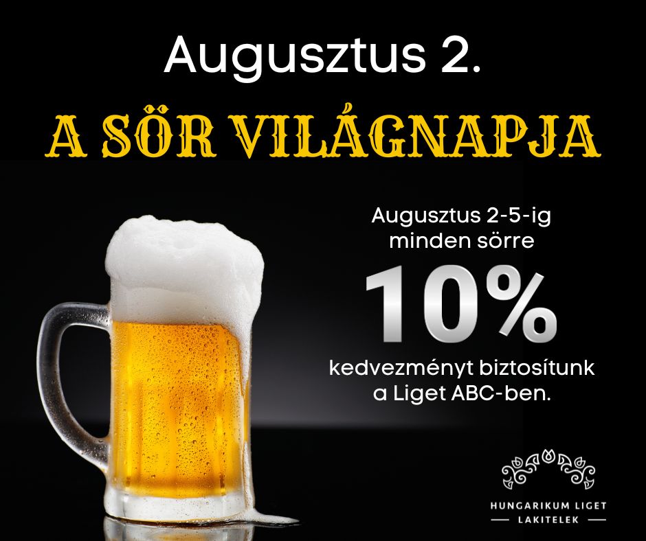E nemes nap alkalmából augusztus 2. és 5. között 10% kedvezményt biztosítunk a Liget ABC-ben kapható sörökre.