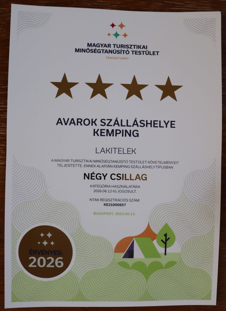 Örömmel számolunk be egy izgalmas fejleményről a lakiteleki Hungarikum Ligetben. Az Avarok Szálláshelye Kemping immár négy csillagos minősítéssel büszkélkedhet, ami a magas színvonalat és kényelmet jelenti a vendégek számára. Ez az új minősítés további lendületet ad a hely turisztikai vonzerejének, és egyben elismerése a szálláshely kiemelkedő munkájának.