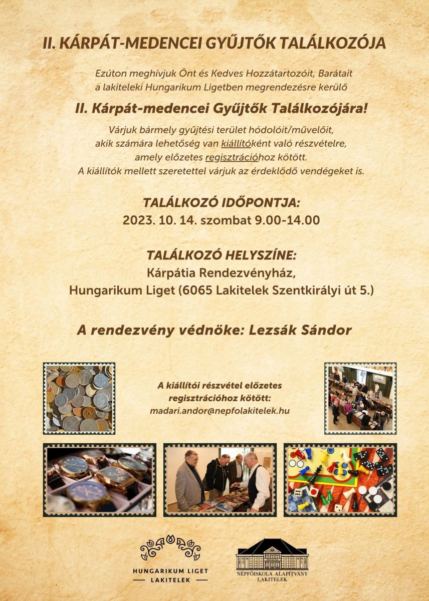 Ezúton meghívjuk Önt és Kedves Hozzátartozóit, Barátait a lakiteleki Hungarikum Ligetben megrendezésre kerülő II. Kárpát-medencei Gyűjtők Találkozójára!