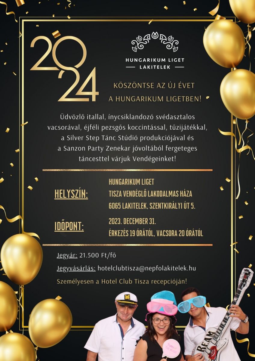 Üdvözlő itallal, ínycsiklandozó svédasztalos vacsorával, éjféli pezsgős koccintással, tűzijátékkal, a Silver Step Tánc Stúdió produkciójával és a Sanzon Party Zenekar jóvoltából fergeteges táncesttel várjuk Vendégeinket!