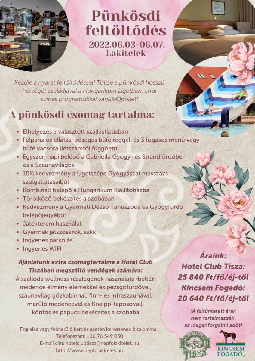 Kezdje a nyarat feltöltődéssel! Töltse a pünkösdi hosszú hétvégét családjával a Hungarikum Ligetben, ahol színes programokkal várjuk Önöket!