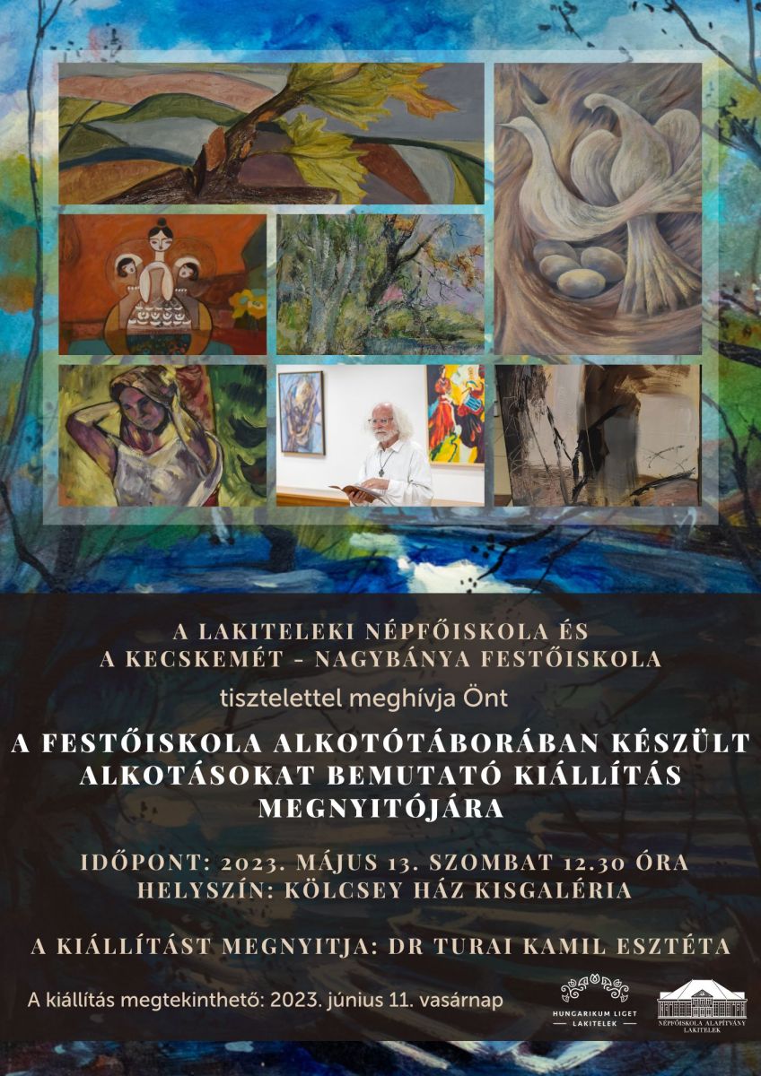 Szeretettel várjuk Önöket a Kecskemét-Nagybánya festőiskola alkotótáborában készült alkotásokat bemutató kiállítás megnyitójára.